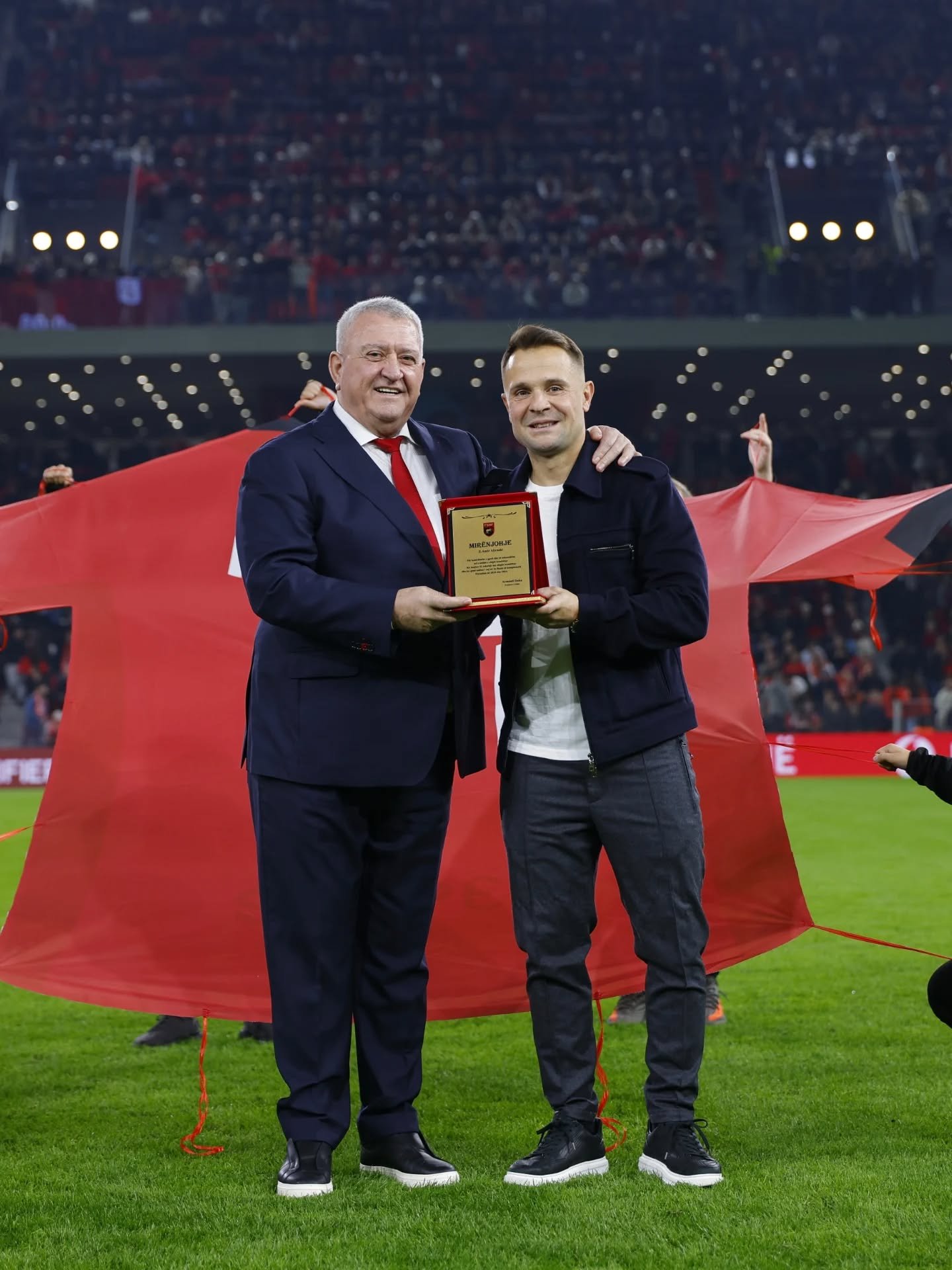 Para ndeshjes së Shqipërisë me Anglinë, më 16 Nëntor 2025,  futbollisti gjakovar Amir Abrashi është nderuar me mirënjohje nga Federata e Futbollit të Shqipërisë për kontributin e dhënë në kombëtaren shqiptare.
