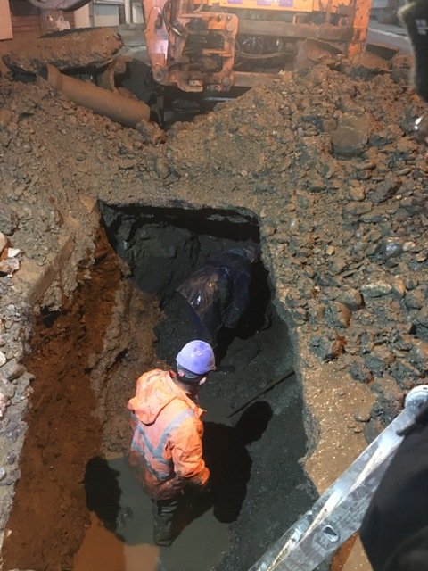 Rreth orës 21.30 vizituam punëtorët e palodhshëm të KRU Gjakova që po punojnë intensivisht në kushte të vështira tereni( sapo afroheshin tek procesi I ndërrimit të gypit, rrëzohej dheu) dhe pam se janë gati në lidhjen e gypit të dëmtuar.