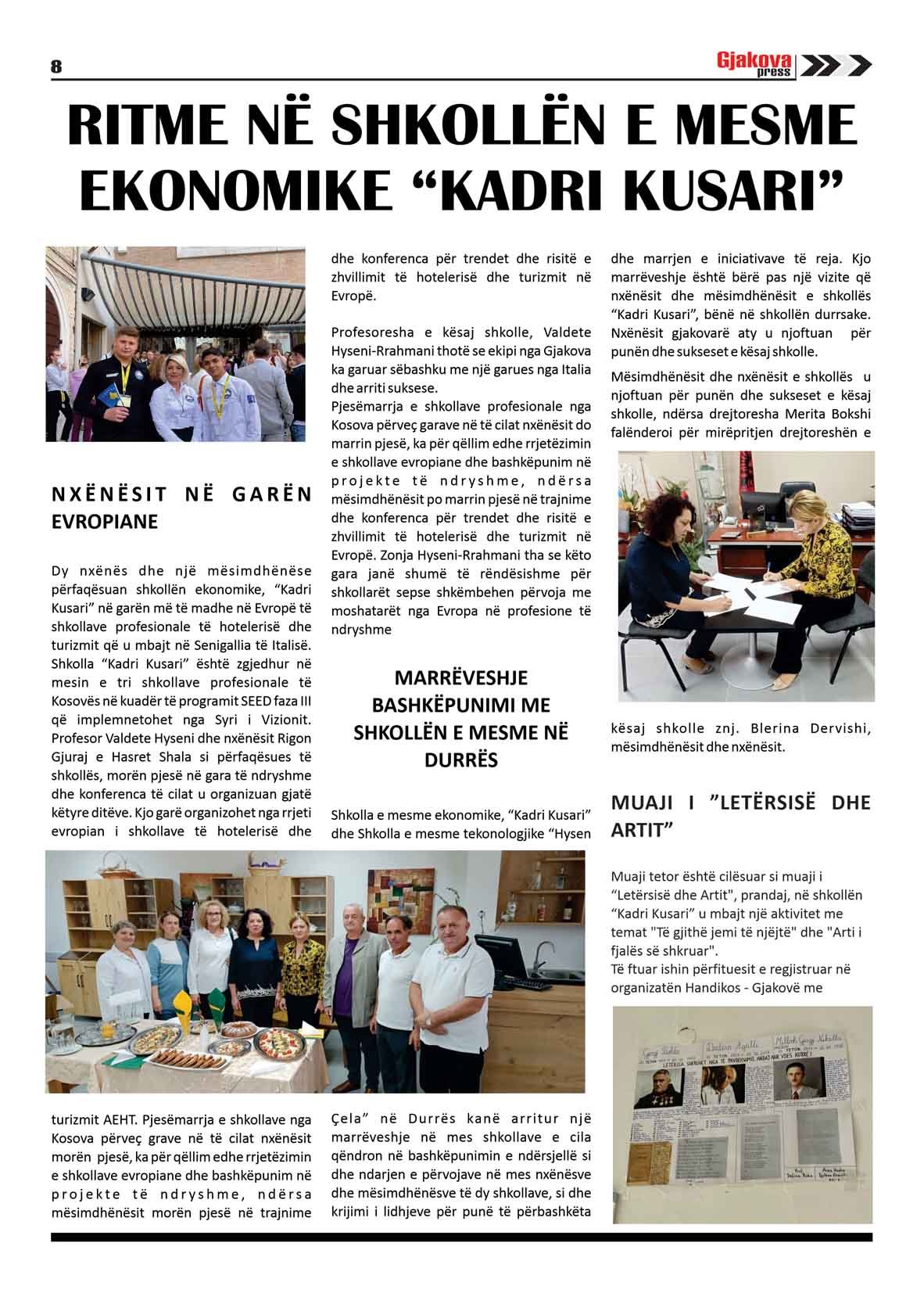 Read MoreShumë veprimtari janë regjistruar gjatë muajit tetor në shkollën e mesme Kadri Kusari në Gjakovë. Në këtë numër, në dy