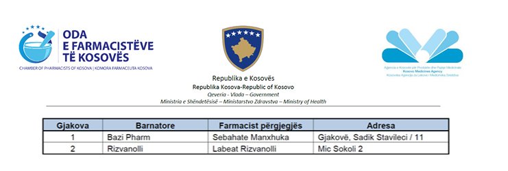 Read MoreOda e Farmacistëve të Kosovës ka publikuar Orarin e barnatoreve kujdestare për datën 28.03.2020. Orari i barnatoreve kujdestare do të