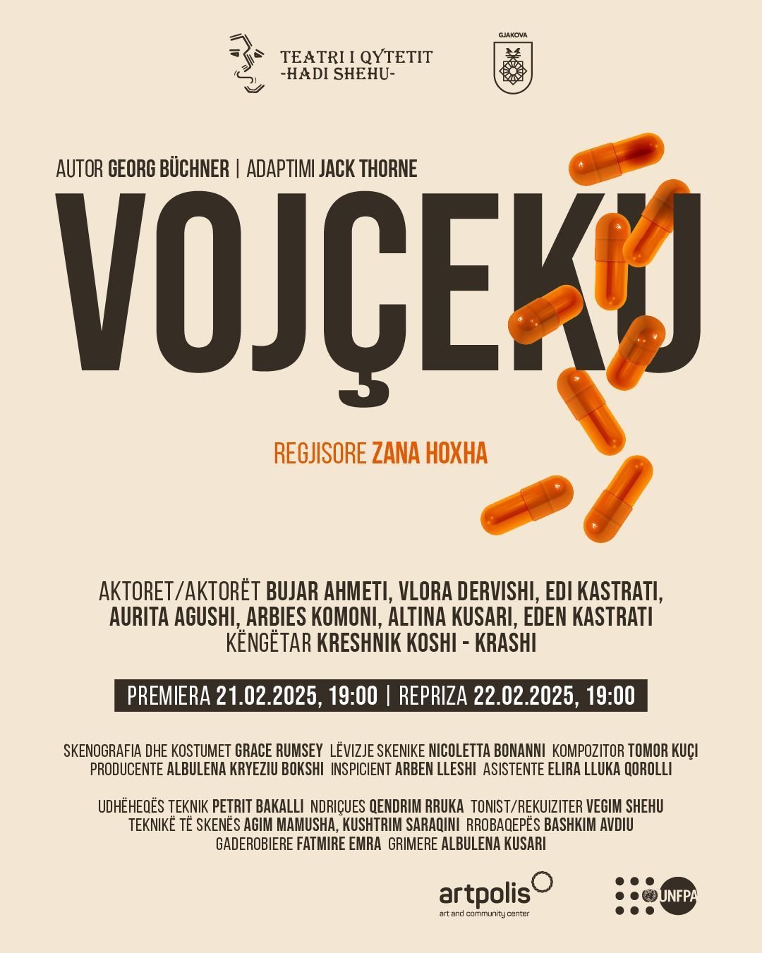 Teatri i Qytetit “Hadi Shehu” të premten mbrëma shfaqi premierën e parë këtë vit, “Vojçeku”, me regj të  Zana Hoxhes . Kjo shfaqje e  Georg Büchner  paraqet një portret emocional të vuajtjes njerëzore dhe është vendosur në Berlin, në vitin 1981 .
