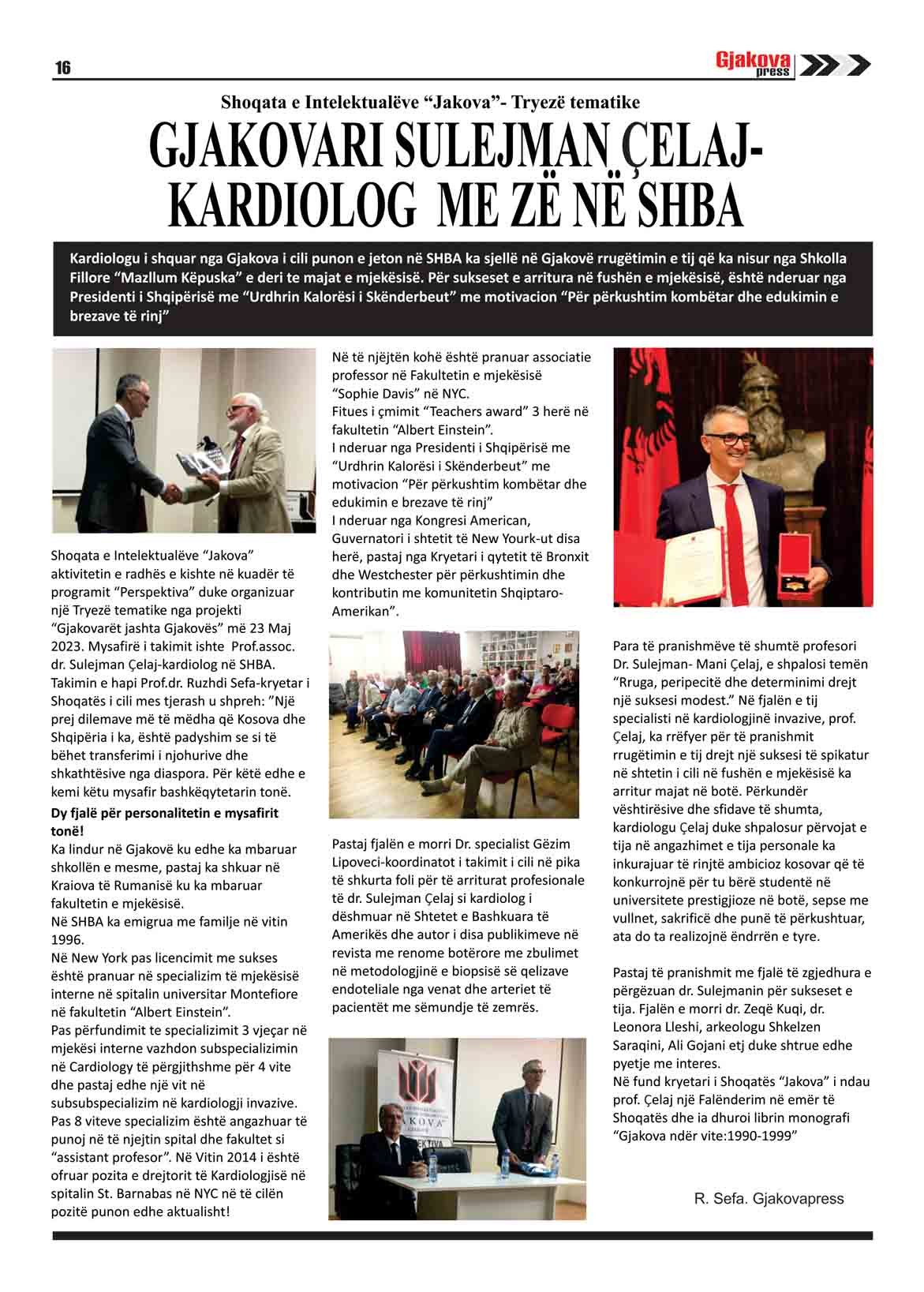 N[ këtë numër të revistës Gjakovapress 173, GJAKOVARI SULEJMAN ÇELAJ- KARDIOLOG ME ZË NË SHBA
