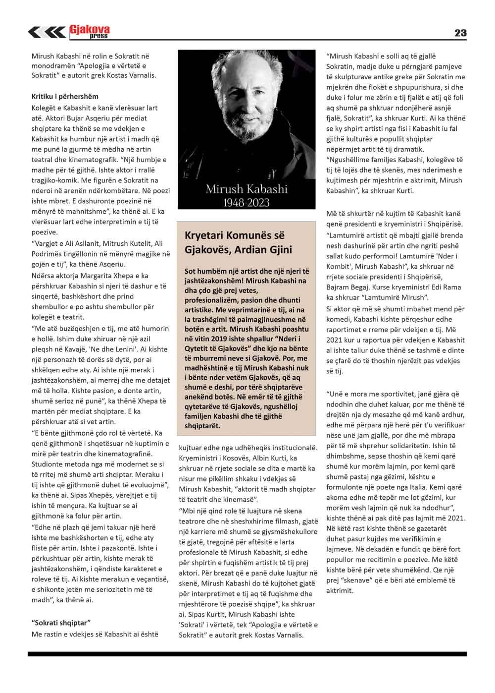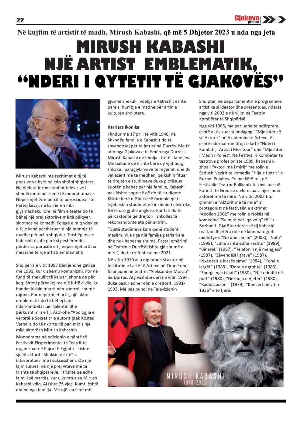 Në Gjakovapress, numri festiv: Në kujtim të artistit të madh, Mirush Kabashi