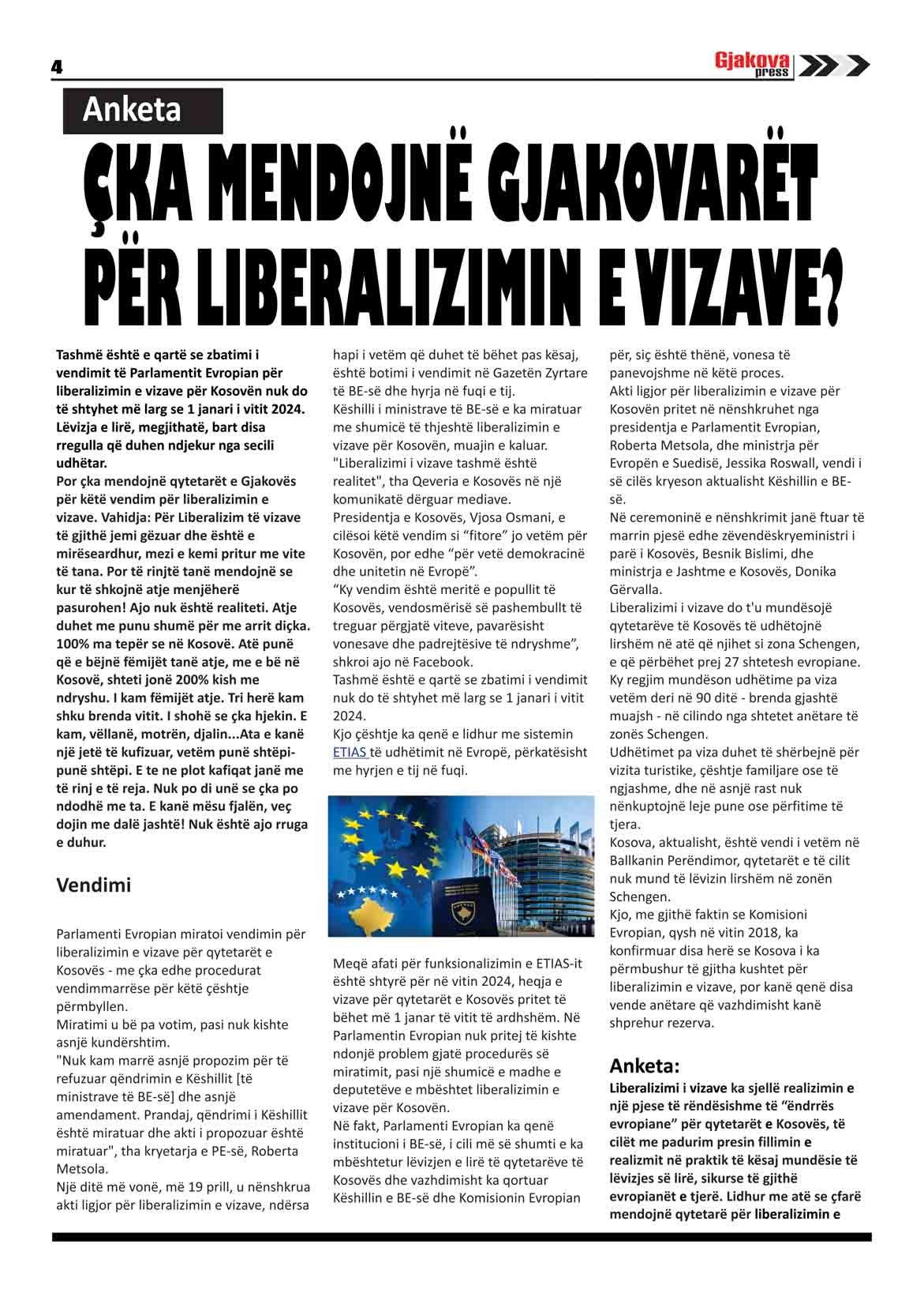 Në këtë numër të Gjakovapress, Anketa, ÇKA MENDOJNË GJAKOVARËT PËR LIBERALIZIMIN E VIZAVE?