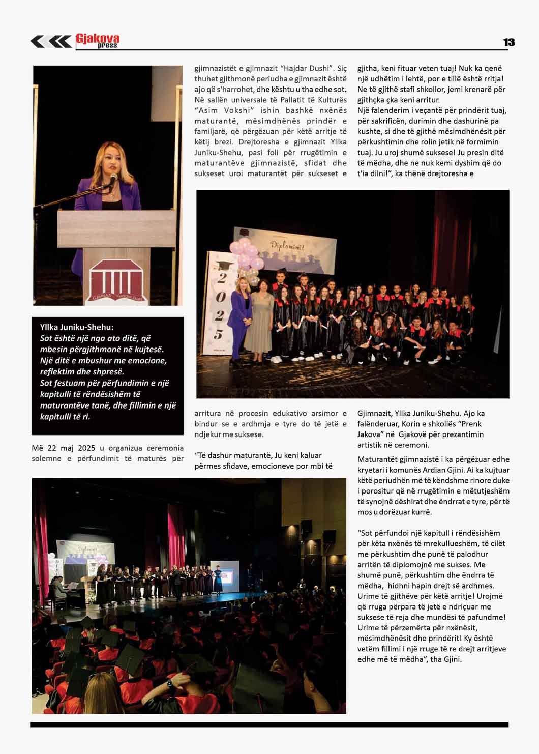 Në këtë numer të Gjakovapress: Ceremonia e Diplomimit të Maturantëve