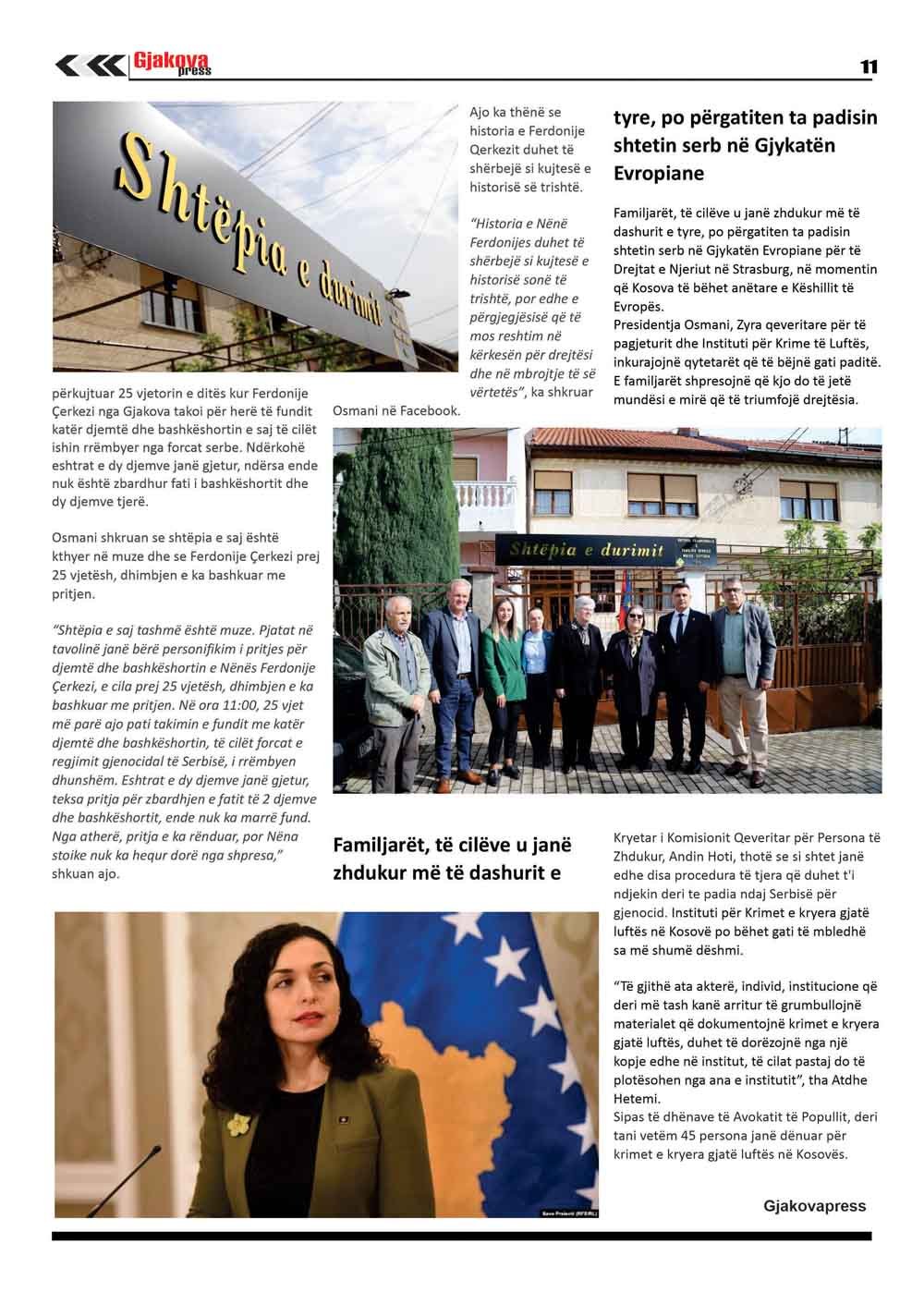 Nëna Ferdonija tha se e ka mirëpritur këtë epitet të ri për sakrificën e familjës së saj, por njëherit ka bërë thirrje institucioneve që të punojnë edhe më shumë rreth zbardhjes së fatit të pjesës tjetër të personave të pagjetur nga lufta e fundit.
