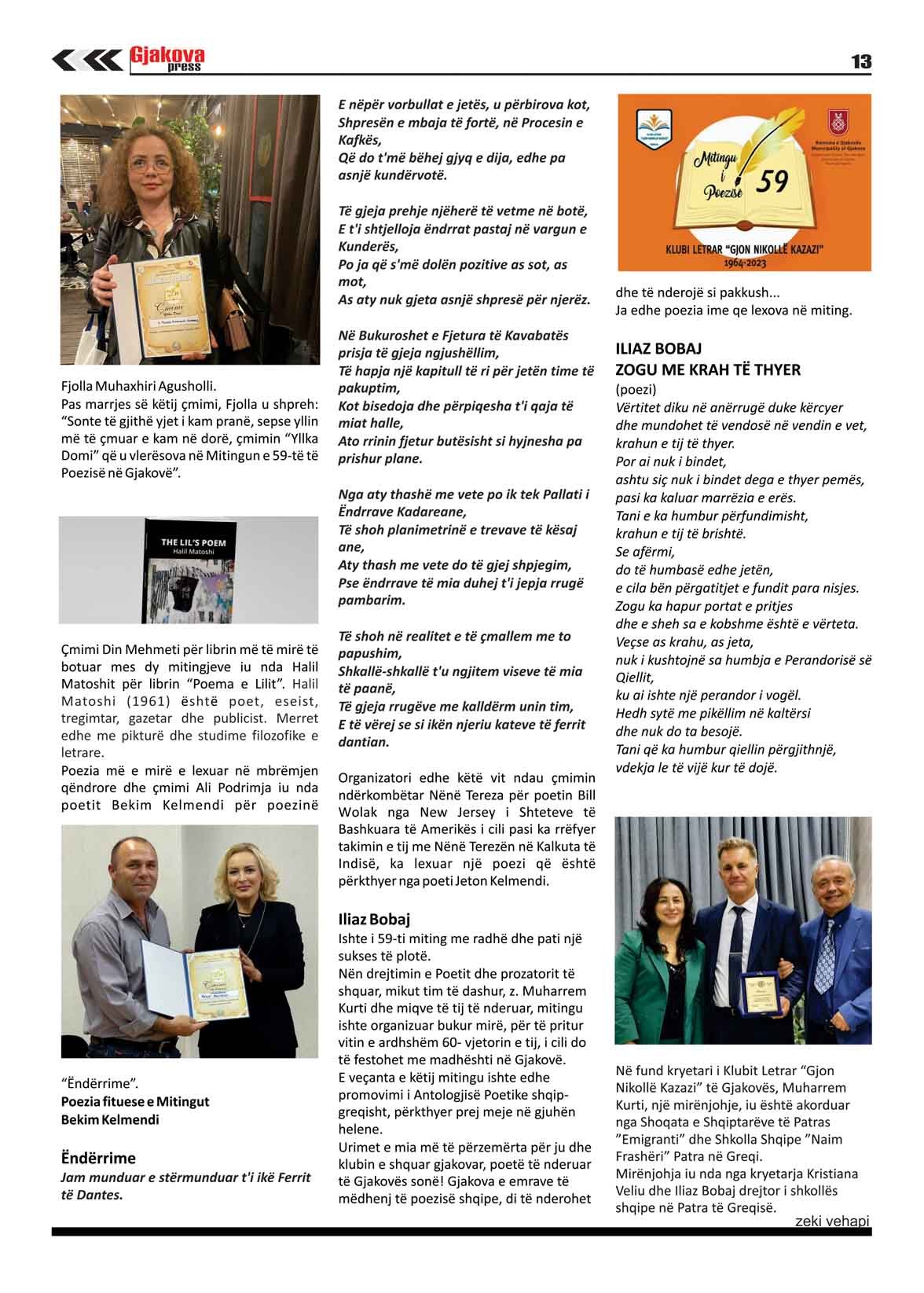 Në numrin më të ri Gjakovapress 178: Mbahet Mitingu i 59-të i Poezisë