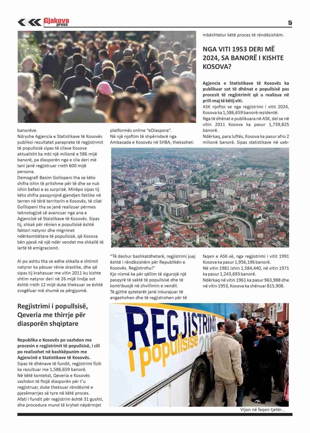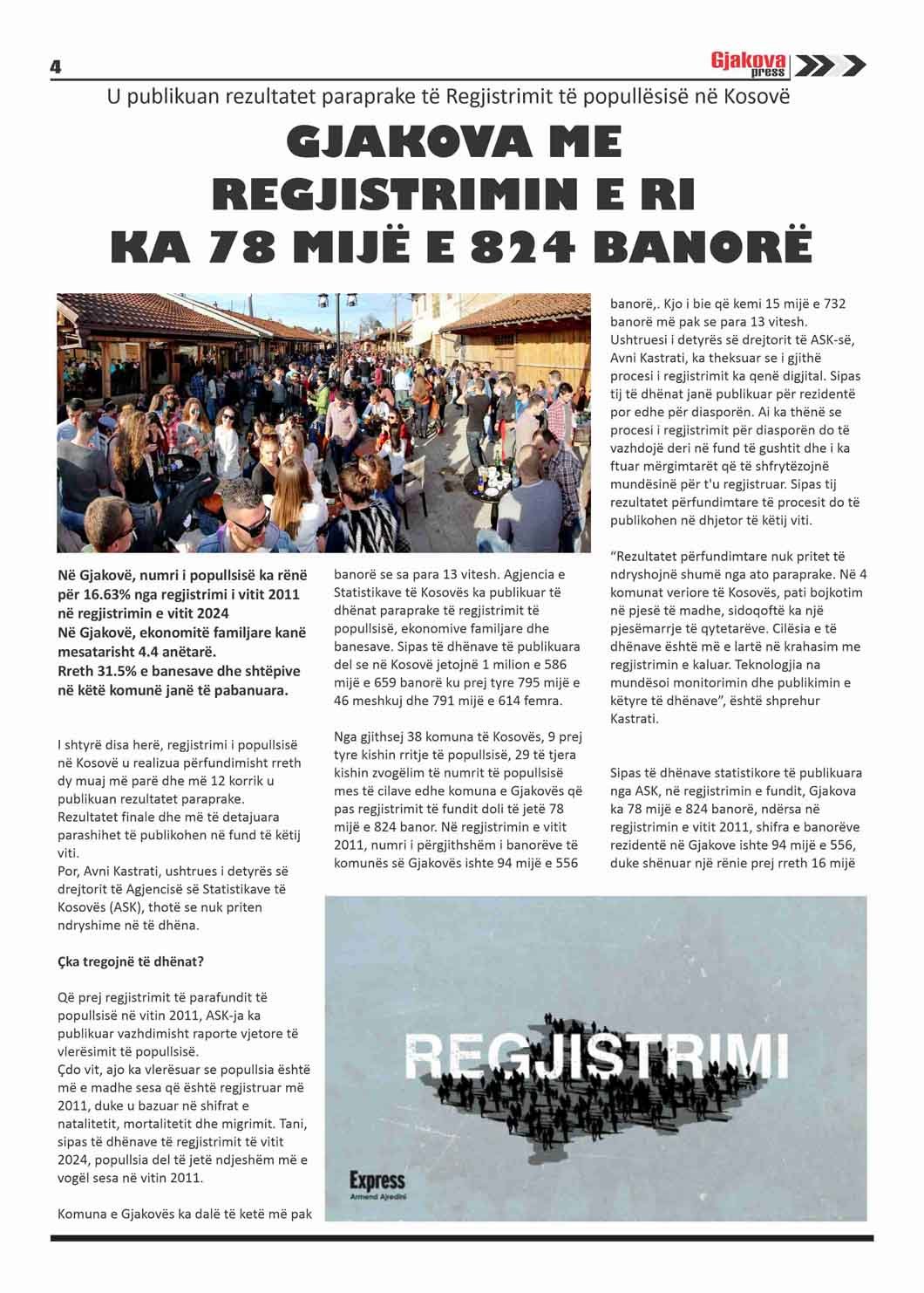 Në numrin më të ri Gjakovapress 187: Gjakova ka 78 mijë e 824 banorë