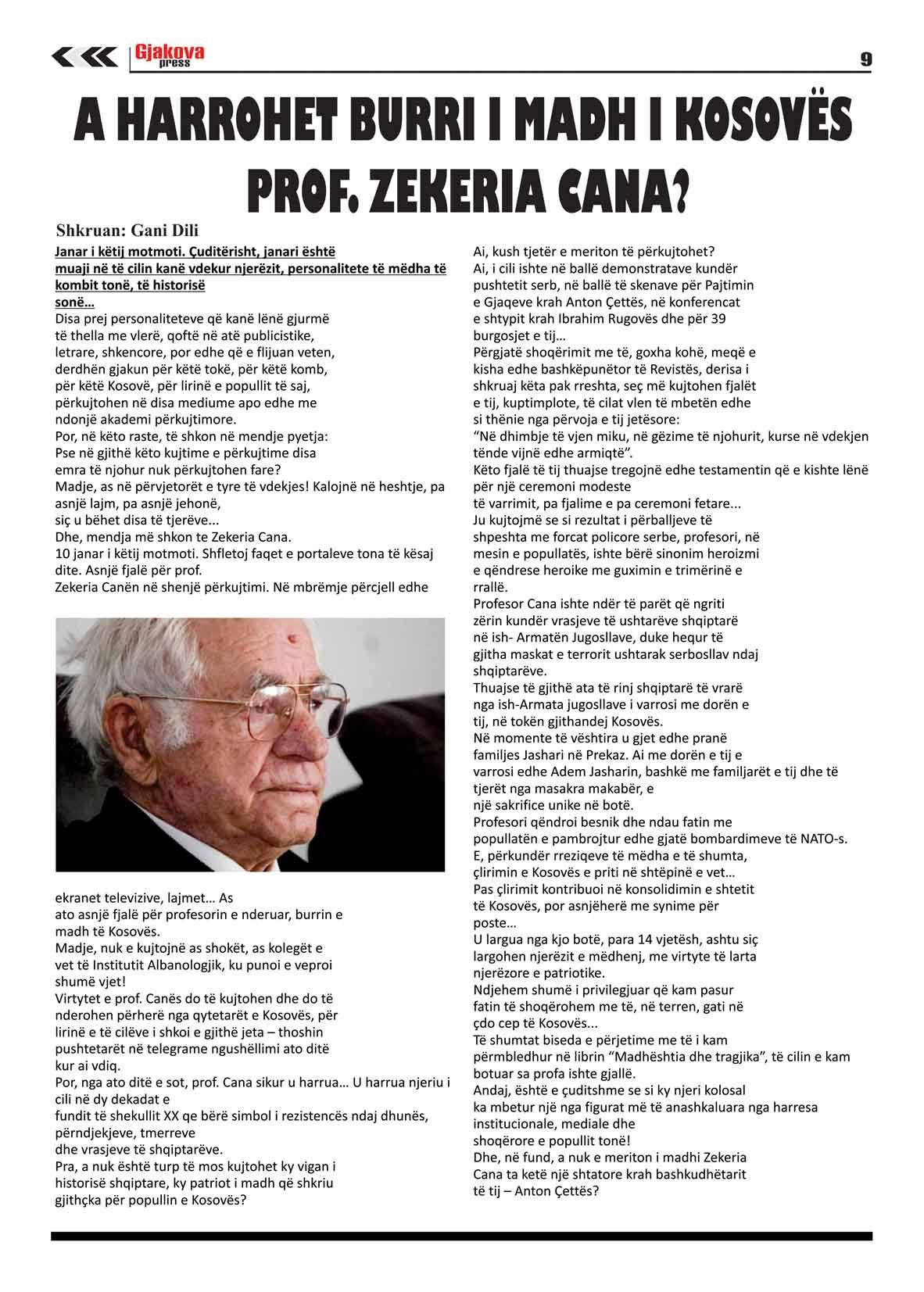 Në numrin më të ri Gjakovapress: A HARROHET BURRI I MADH I KOSOVËS PROF. ZEKERIA CANA?