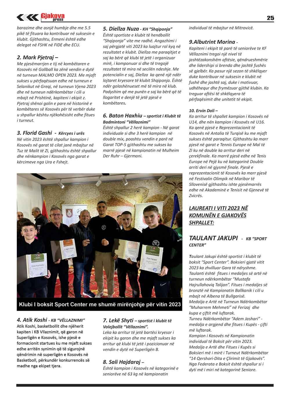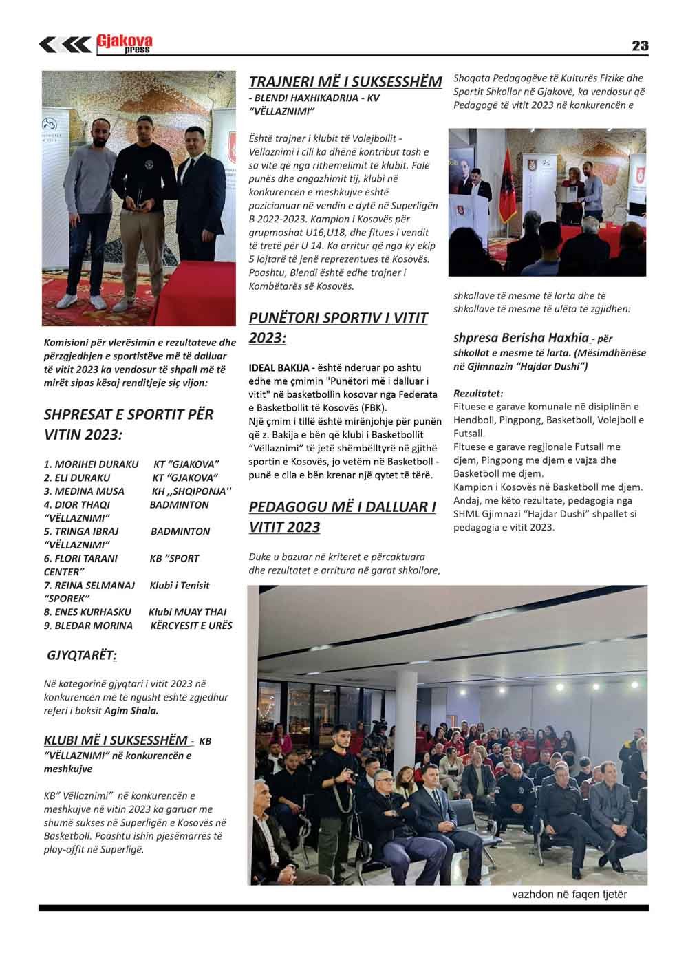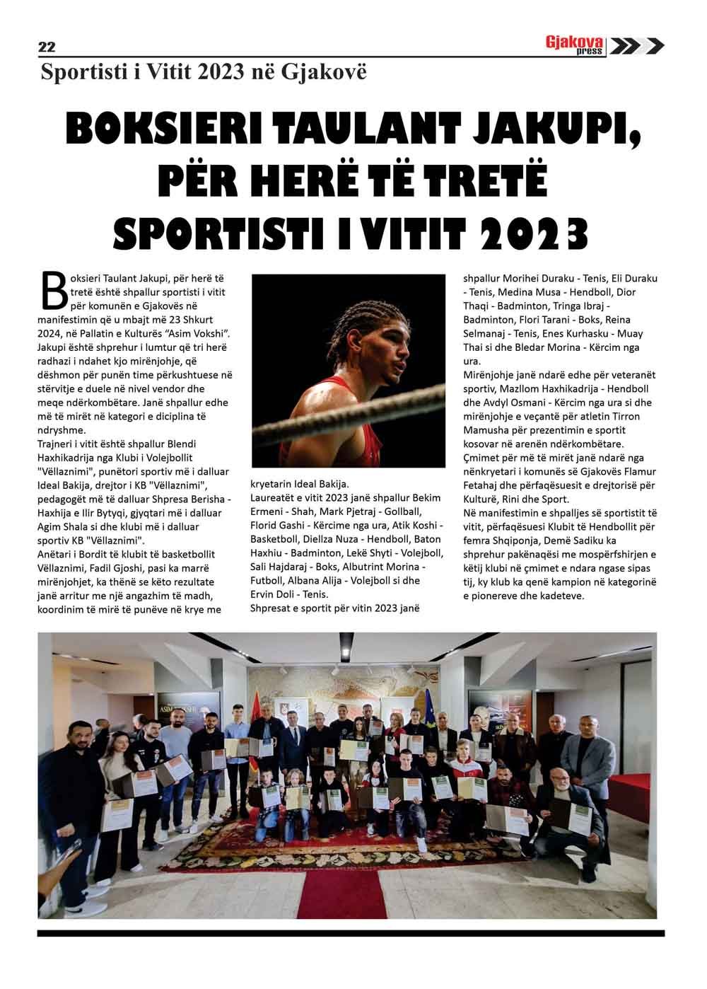 Në numrin më të ri Gjakovapress, për sportistët më të mirë të Gjakovës për vitin 2023