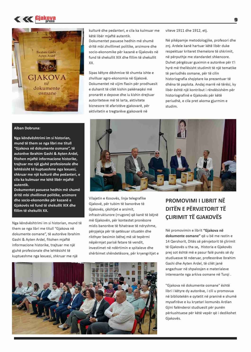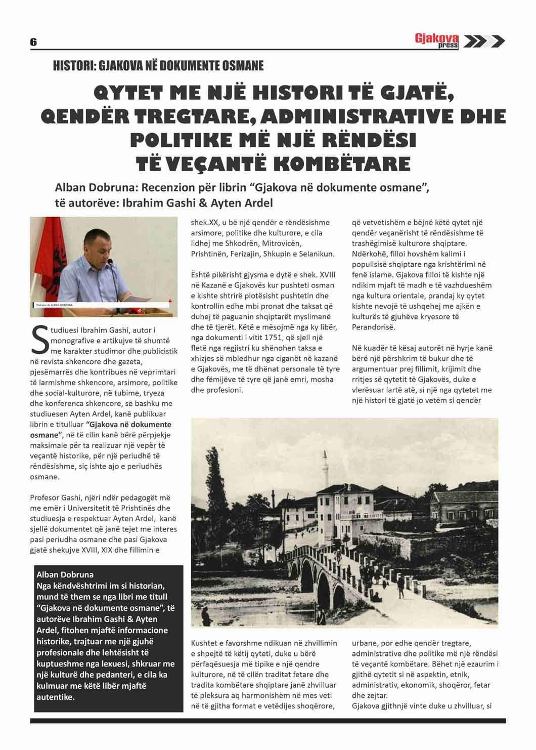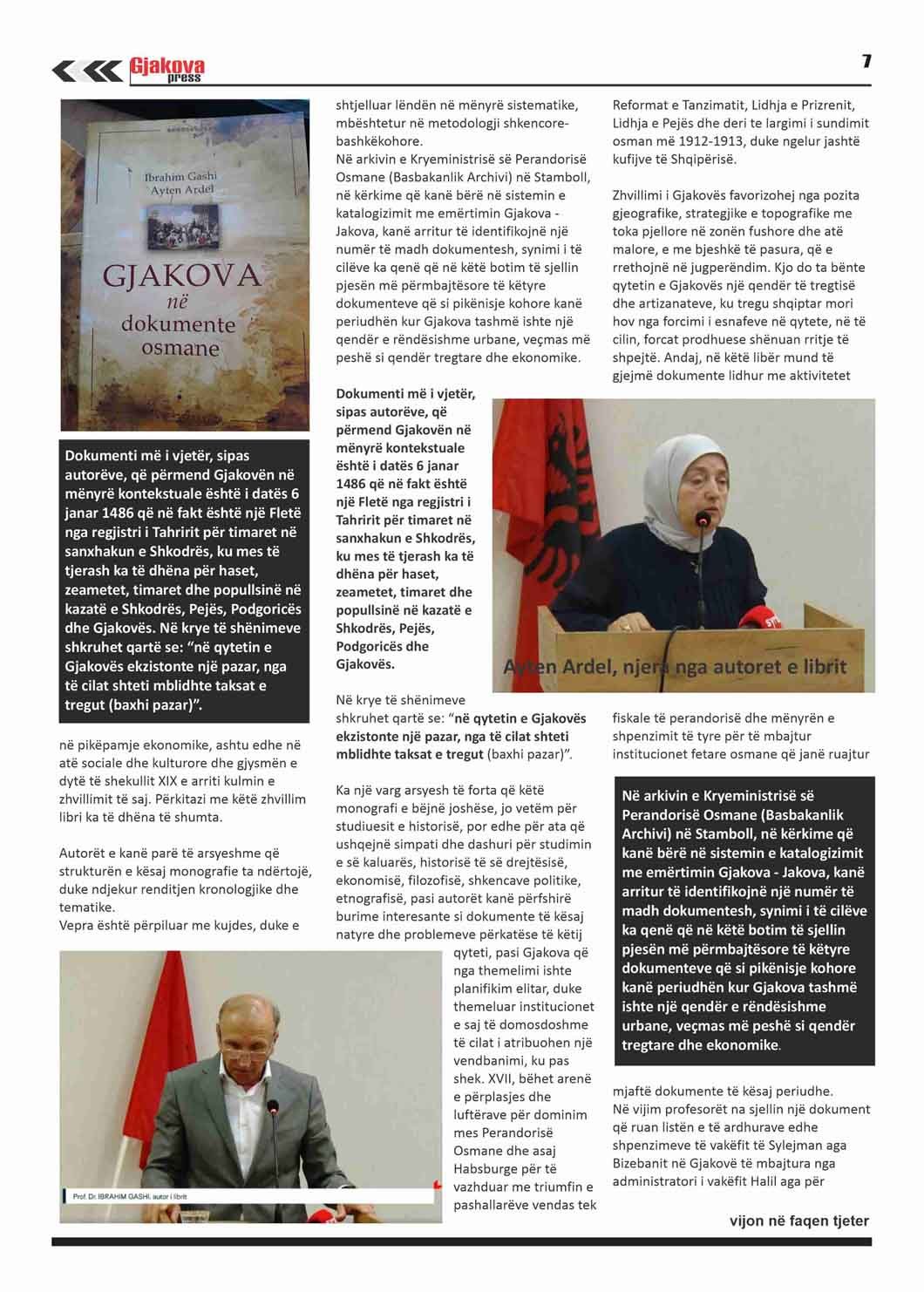 Studiuesi Ibrahim Gashi, autor i monografive e artikujve të shumtë me karakter studimor dhe publicistik në revista shkencore dhe gazeta, pjesëmarrëse dhe kontribuese në veprimtari të larmishme shkencore, arsimore, politike dhe social-kulturore, në tubime, tryeza dhe konferenca shkencore, së bashku me studiuesen Ayten Ardel, kanë publikuar librin e titulluar “Gjakova në dokumente osmane”, në të cilin ka bërë përpjekje maksimale për ta realizuar një vepër të veçantë historike, për një periudhë të rëndësishme, siç ishte ajo e periudhës osmane.