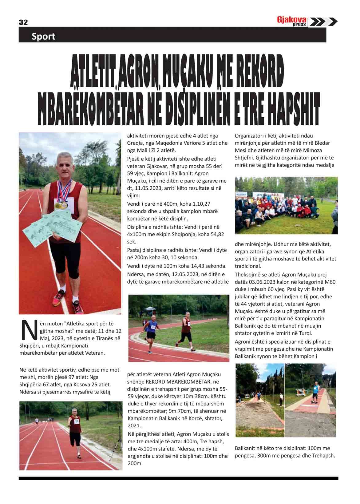 Në revisten Gjakovapress 173- ATLETI AGRON MUÇAKU ME REKORD MBARËKOMBËTAR