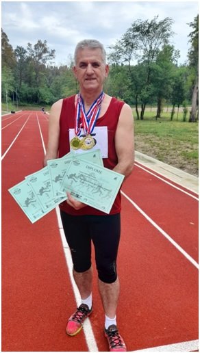 Pjesë e këtij aktiviteti ishte edhe atleti veteran Gjakovar, në grup mosha 55 deri 59 vjeç, Kampion i Ballkanit: Agron Muçaku, i cili në ditën e parë të garave me dt, 11.05.2023, arriti këto rezultate në vijim: