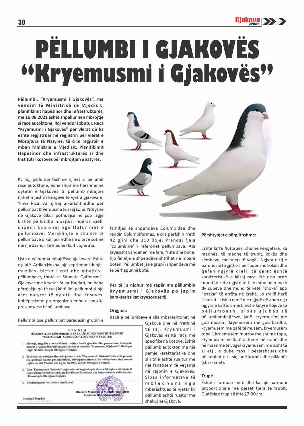 Në numrin më të ri online, të Gjakovapress 187, e njohim Pëllumbin autokton të Gjakovës