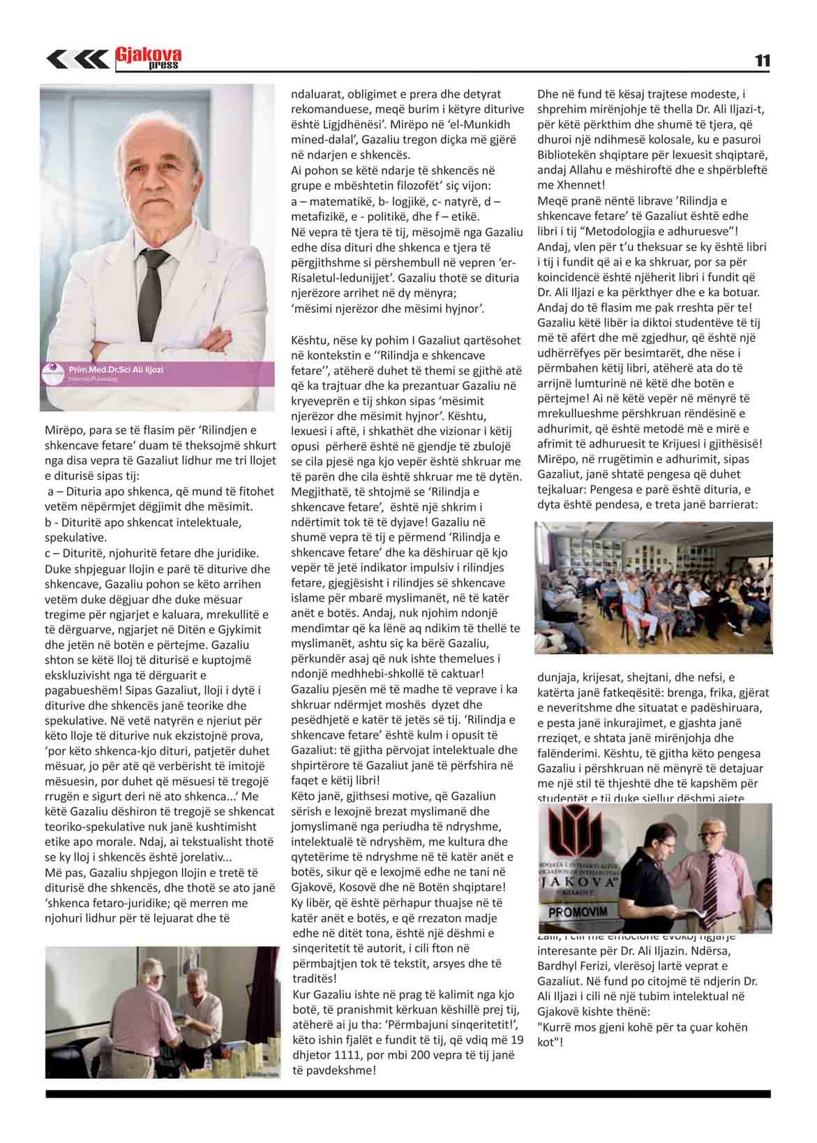 Shoqata e intelektualëve “Jakova” në Gjakovë me rastin e një vjetorit të vdekjes së Prim. Med. Dr. Sc. Ali F. Iljazi, organizoj promovimin e veprave kapitale të dijetarit dhe reformatorit të shkencave fetare islame Ebu Hamid Gazali me titull ” Ihja-Ulumid-din” në shqip: “Rilindja e shkencave fetare” prej 1 deri 9 libra +1. Libra këto të përkthyera nga gjuha Boshnjake nga i ndjeri Prim. Med. Dr. Sc. Ali F. Iljazi. Organizimi i këtij evenimenti u mbajt me datë: 10, Korrik ,2023, 12 në bibliotekën e qytetit të Gjakovës, në sallën ” Teki Dervishi”.
