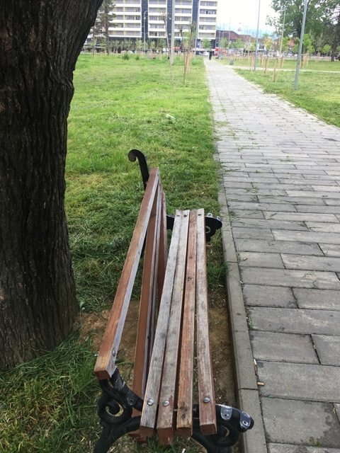 Në parkun e madh, që nga dita në ditë po pasurohet me drunj dekorativ, një virus I keq, një dorë shkatërrimtare ka dëmtuar ulësen. Kjo sjellje, që aty-këtu po hetohet edhe në mjedise tjera publike ia prish imazhin zonave të caktuara gjelbëruese. Aty , para pandemisë, bashkëqytetarët që relaksohen me ambientet e gjelbëruara, ulen e pushojnë duke kuvenduar për hallet e jetës. Shumica, sigurisht një pjesë të kohës e kalojnë duke gjykuar keqbërësit, sjelljet e pahijshme të tyre, në vend se të merren me tema më të lehta rekreative…